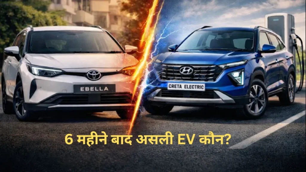 Toyota Ebella vs Hyundai Creta Electric: अगर आप पहली EV लेने की सोच रहे हैं, तो दिल और दिमाग दोनों उलझ जाते हैं। एक तरफ Toyota जैसा भरोसे का नाम, दूसरी तरफ Creta जैसा जाना-पहचाना चेहरा।